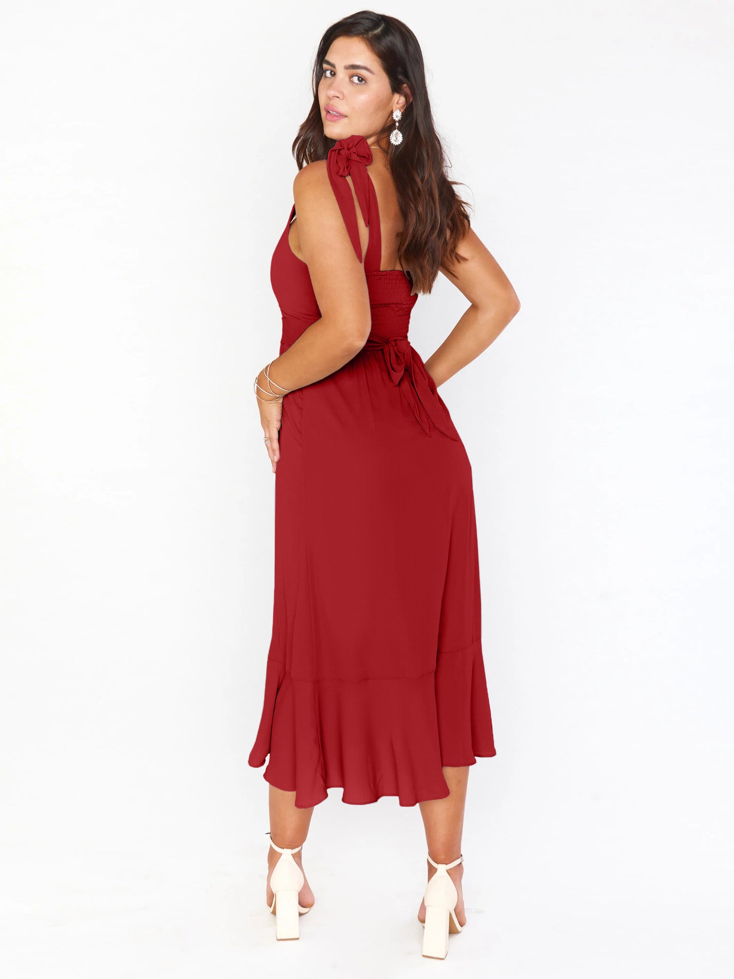 ❤【Soft And Comfortable Fabric】100% Polyester.More friendly to skin makes you comfortable to wear, lightweight and breathable.Breathable and soft material ideal for all seasons.📌Size Guide:S=US (4-6), M=US(8-10), L=US(12-14), XL=US(16-18)❤【Multiple Features】This maxi dress features a straight neckline,adjustable self tie straps,tie waist,stretchy back,sexy side slit, elegant ruffle hem,perfect ankle length.The adjustable self tie straps and sexy side slit makes this homecoming dresses elegant and stylish,allowing you to show a unique charm.❤【Perfect For Multiple Occasions】This cocktail dress is great for any season vacation, outdoor,wedding,honeymoon, anniversary,casual,office, beach, date, party, daily wear,wear it attend a wedding party, a good selection go to a beach for a party,you will get tons of compliments.❤【Match&Care】Formal Dresses for Women looks great to match with handbag, necklace, earrings, high heels, sandals, wedges, Flats, Fashionable Look.📌 Tips: For A Better Dress Experience,Iron Before Wearing.Do Not Use Bleach.❤ Please check wedding guest dresses for women size measurements before ordering to ensure a proper fit.
